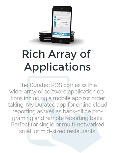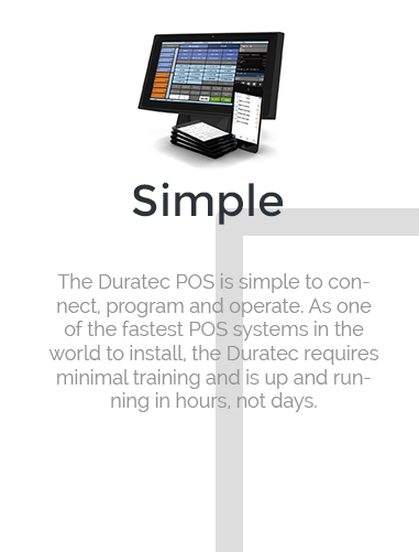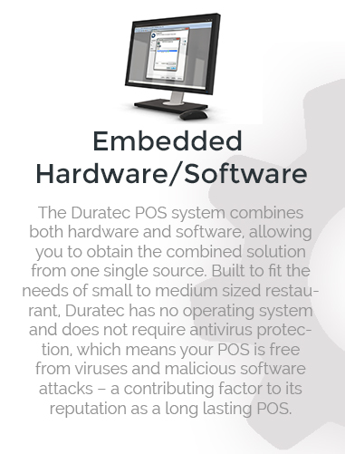 As a single hardware and software stand-alone solution, the Duratec POS has no operating system, which means you can feel confident that your solution is secure from any malicious third-party software attacks over the lifetime of the product.